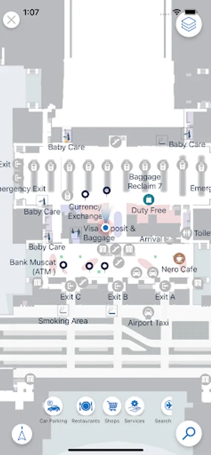 • Indoor Map to find and navigate to places inside Muscat Airport such as Dutyfree Shops, Restaurants etc