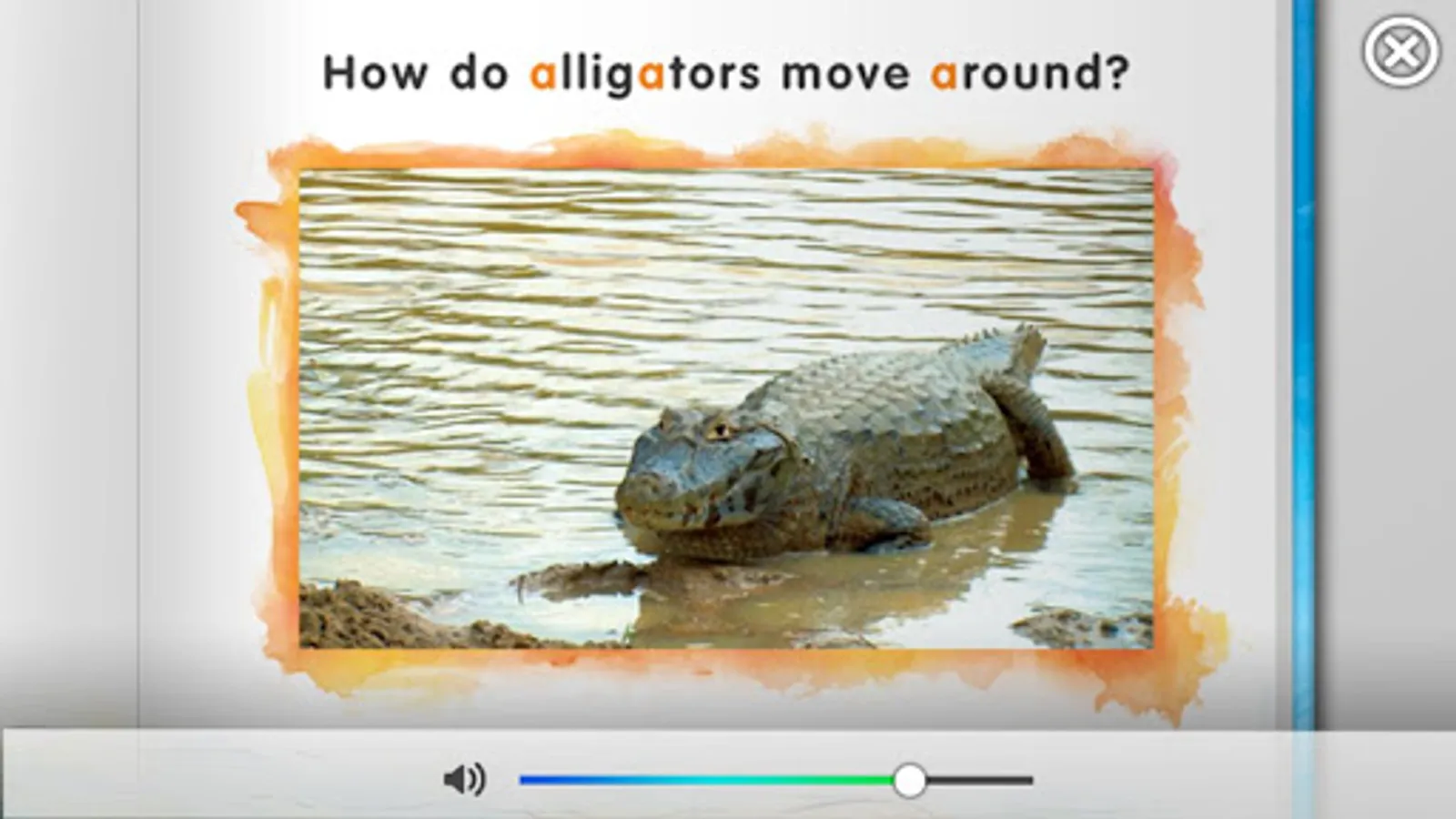 Read the book with your child, emphasize the letters, and then ask the questions related to each letter and animal. Point your device at the photographs in the book and hear and see the answers to each question as the animal photos seem to magically turn into motion video and the questions are answered.
