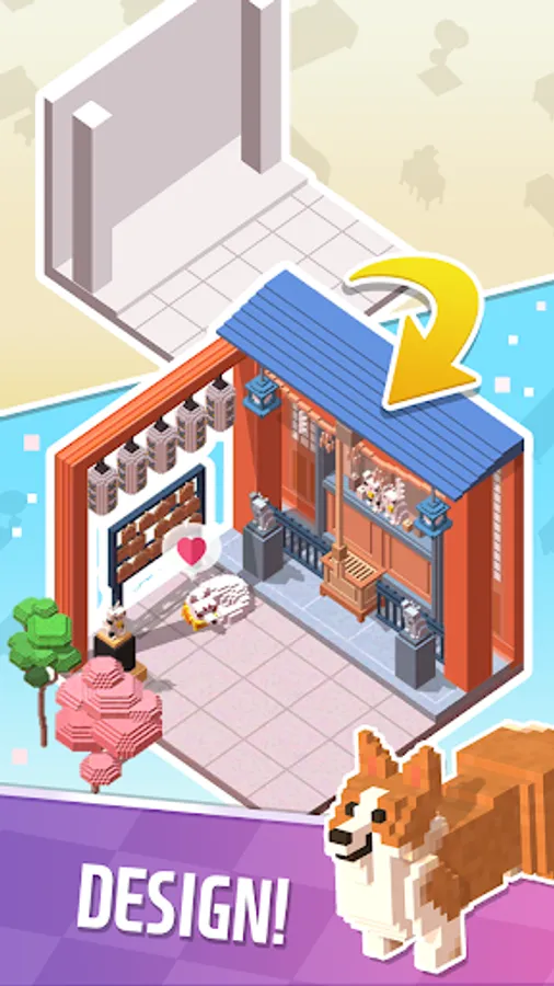 Make a pretty house with various dang-dang puppies such as poodle, welsh corgi, retriever, and cute meow friends such as Persian, Turkish Angora, and Ko-Short!