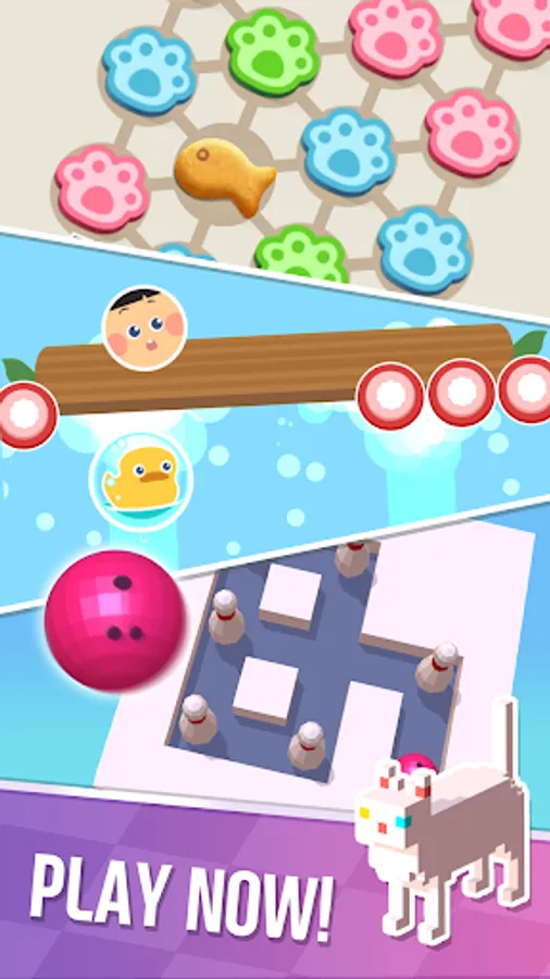 Over 250 mini-game levels that are easy to play, including mini bowling, finding rubber ducks, triangle puzzles, and more!
