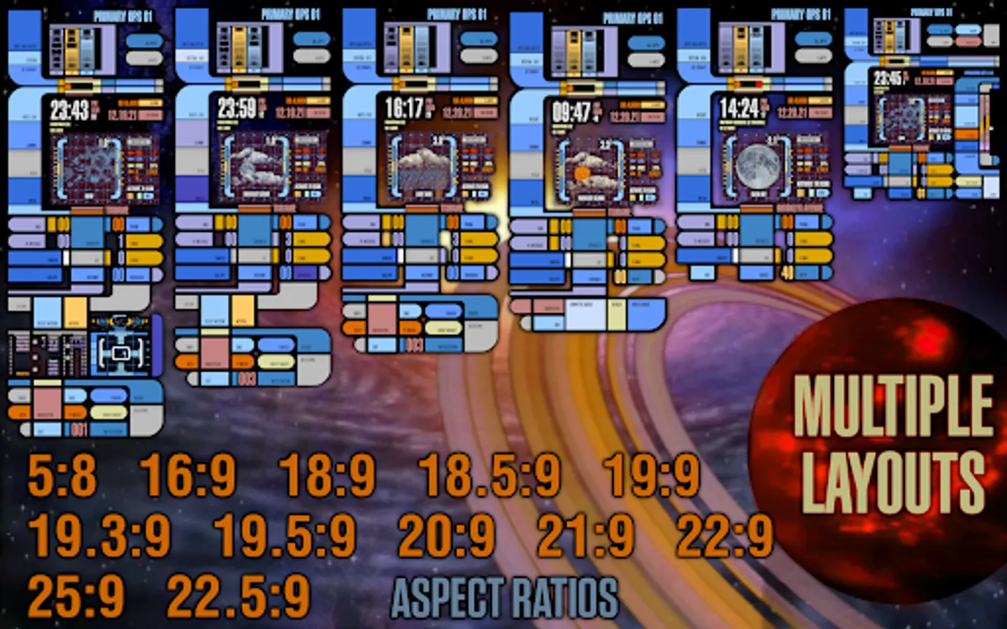 This is set up for easy, intuitive, common use right from launch. Please be advised, there are 12 layouts included for Android (standard 16:9) (medium 18:9) (long screen 18.9:5) (long medium 19:9) (long screen medium + 19.3:9) (long screen + 19.5:9) (extra long screen 20:9) (super long screen 21:9) (super long *Flip 22:9) (*Fold 25:9 and 22.5:18) and (tablet 16:10 or 8:5). If your device is a different aspect ratio, it's easy enough to edit to fill empty gaps at the bottom or change the margins - more info on that in the 'Screen Sizing' section of the FAQ.