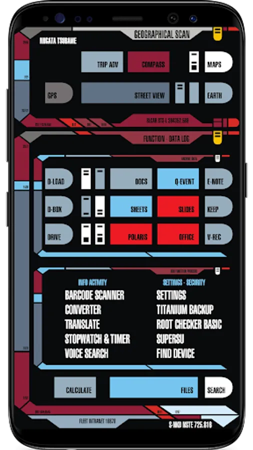 The interface of this app was designed by Scott Nakada for the fan film Star Trek: Renegades which is now Renegades the Series on Atomic Network. It was meant to replace the old computer style for the film which is completely new, original, and innovative. It's use has also continued into Renegades the Series.