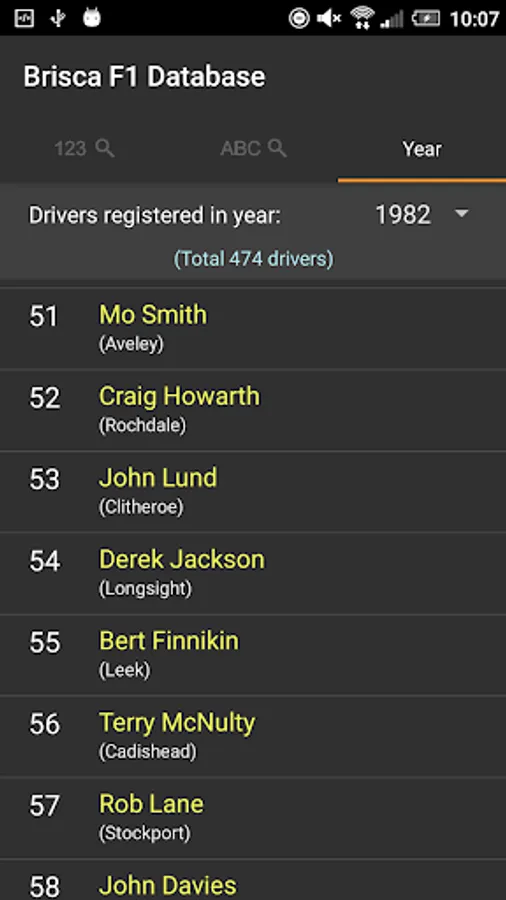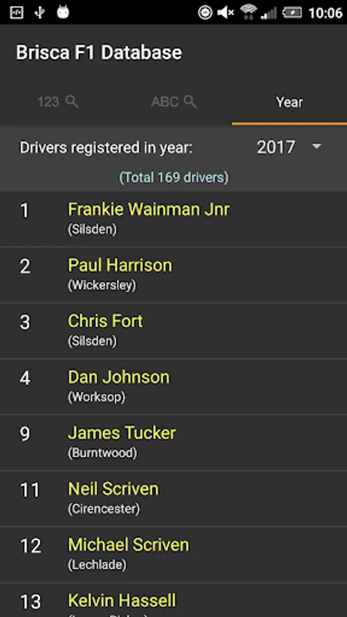 A searchable database of all big league Brisca drivers' names and numbers throughout the years, from its conception in the 50s until the present time. Search by name, number, or year, and view each driver's entire history in the sport.
