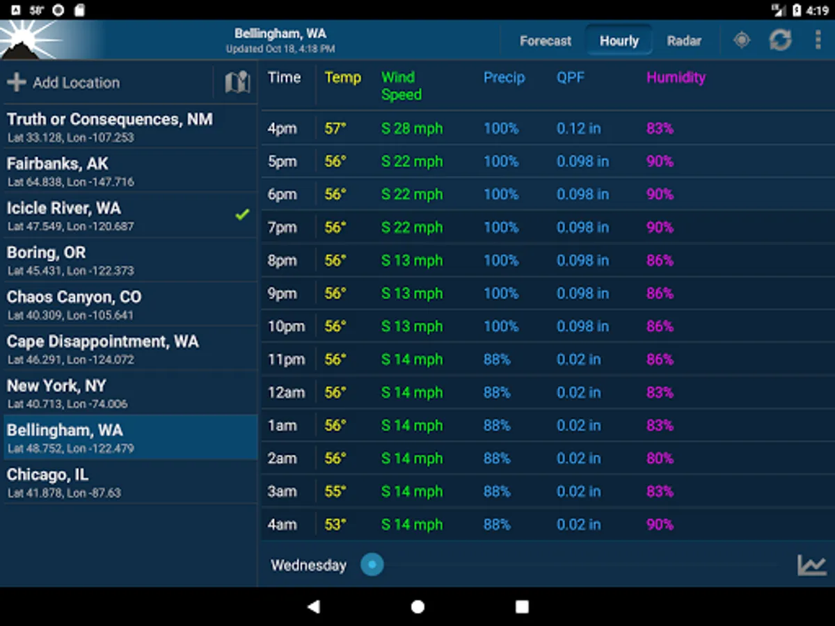 This app provides forecasts, animated radar, hourly forecast, and current conditions, all in an intuitive and easy to use interface. Just the information you need, provided accurately, quickly, and for your exact location.