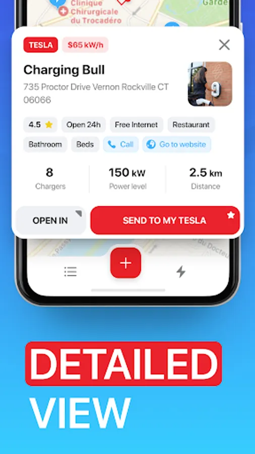 The list of tesla supercharger stations is constantly updated, as soon as a new recharging spot appears, it will be directly visible in the application.