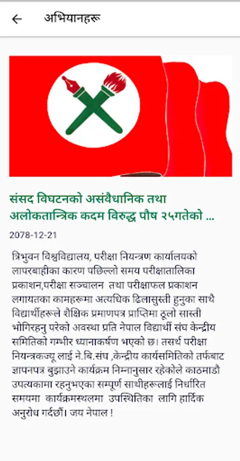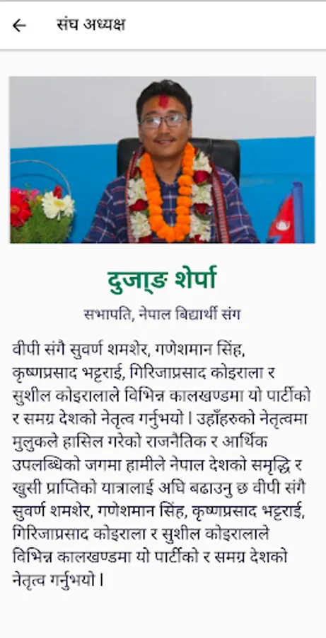 Nepal Student Union is one of the major student political wings in Nepal. The Nepal Student Union represents the Nepali Congress, currently the largest party in Nepal. During the autocratic rule (Panchayati Byawastha), the union played a major role in unifying students to establish democracy in the country