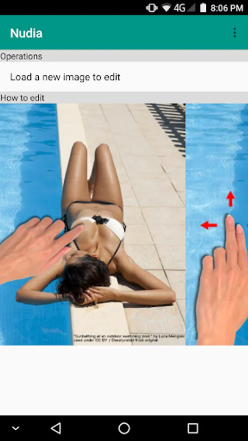 4. Run a fingertip over what you want to erase. e.g. swim suit.