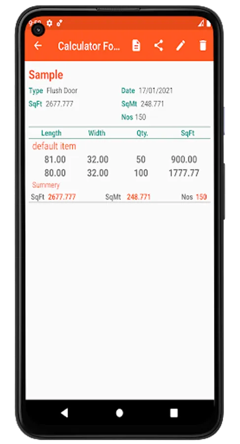 # calculate Square feet and square meter for Flush doors and Plywood/Block Board