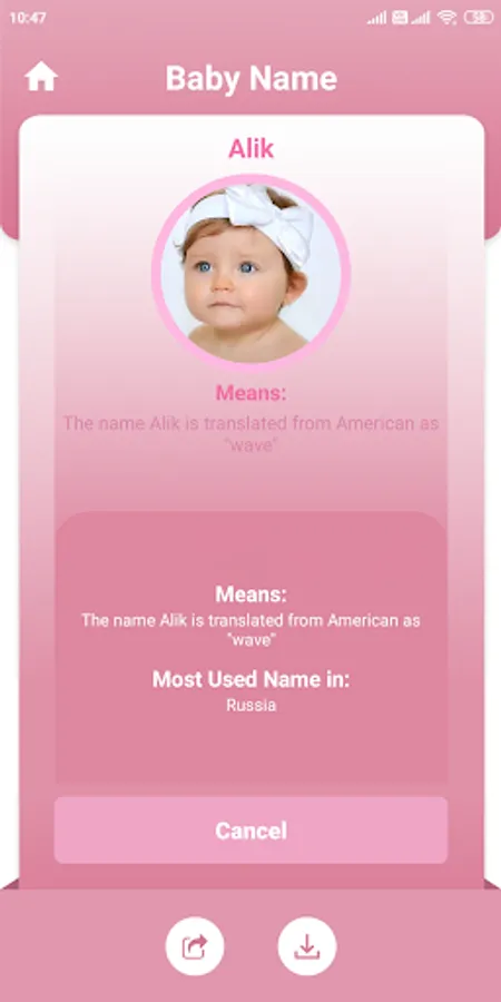 ◆ Press on the “Baby Name” button.