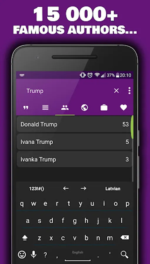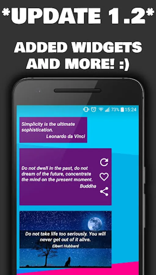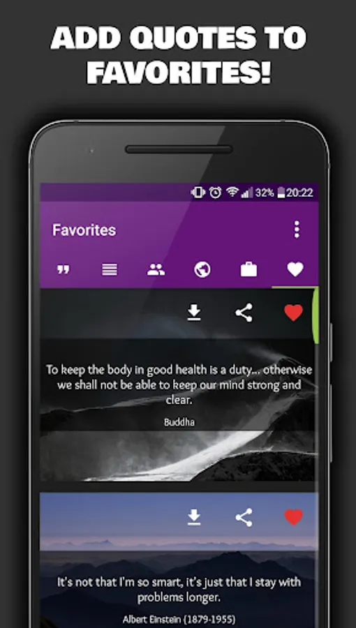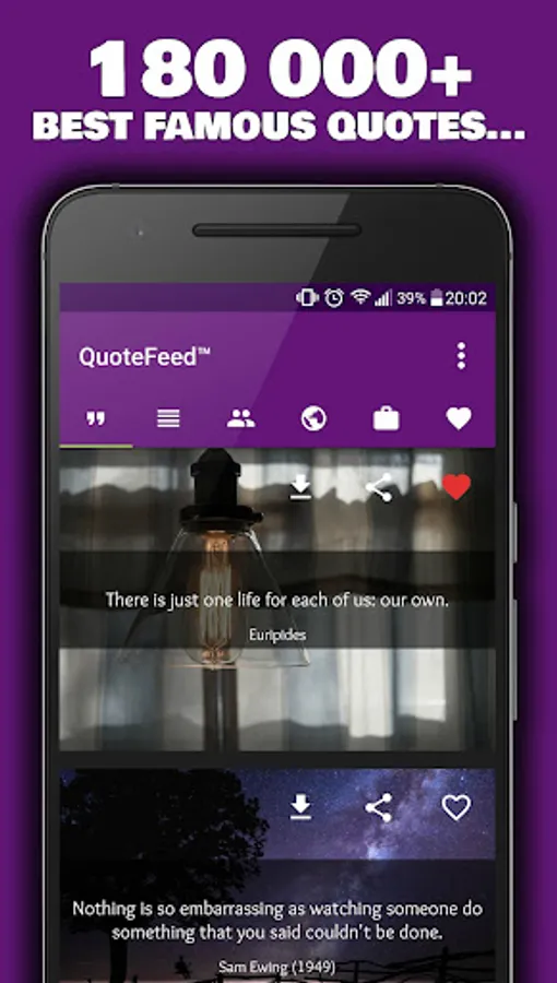 Here you will find any Quotes, Sayings and Statuses you could wish for - more than 180 000+ handpicked from the world's famous people! Basically this is the only quote app you'll ever need!