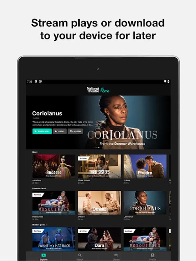 To access all features and content you can subscribe to National Theatre at Home on a monthly or yearly basis with an auto-renewing subscription right inside the app.* Pricing can vary by region and will be confirmed before purchase in the app. In app subscriptions will automatically renew at the end of their cycle.