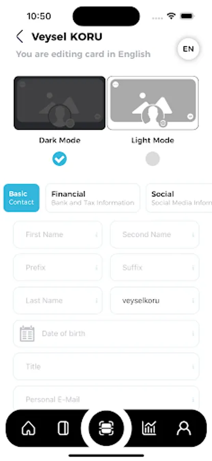 In addition to contact information, bank information, tax information and social media information, you can share a lot of information with the people you want and report the information you share. Get acquainted with our application now, as well as speed up your meeting and contact processes, report it!