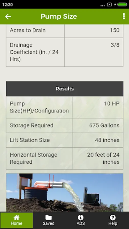 The ADS Agricultural Drainage Resource is a complete tool to help you determine all of your drain tile needs. You are able to calculate acres drained, using both single and dual wall tile, calculate pipe diameter needed to drain your desired acreage, the amount of pipe needed for a job and the cost you can anticipate, and slope. Additionally, you can determine the lift station size and configuration needed, and ADS’ unique G.R.O.W. Analysis helping you make the best decisions for your land. The app also gives you the ability to save your calculations with unique names for easy reference at a later date.