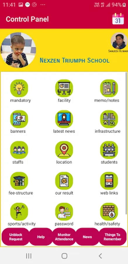 Official details, Location, Facilities, Teacher's details, Web links, Fee-structures, Batch's details, Safety and security rules, Planner, Sports and Activities, Banners or Photo Gallery etc. Apart from that you can make your memo notes for future use. Make salary record of staffs. Fee record for students. Make staff's or Student's attendance. You can allow any staff member to make or manage the attendance account.