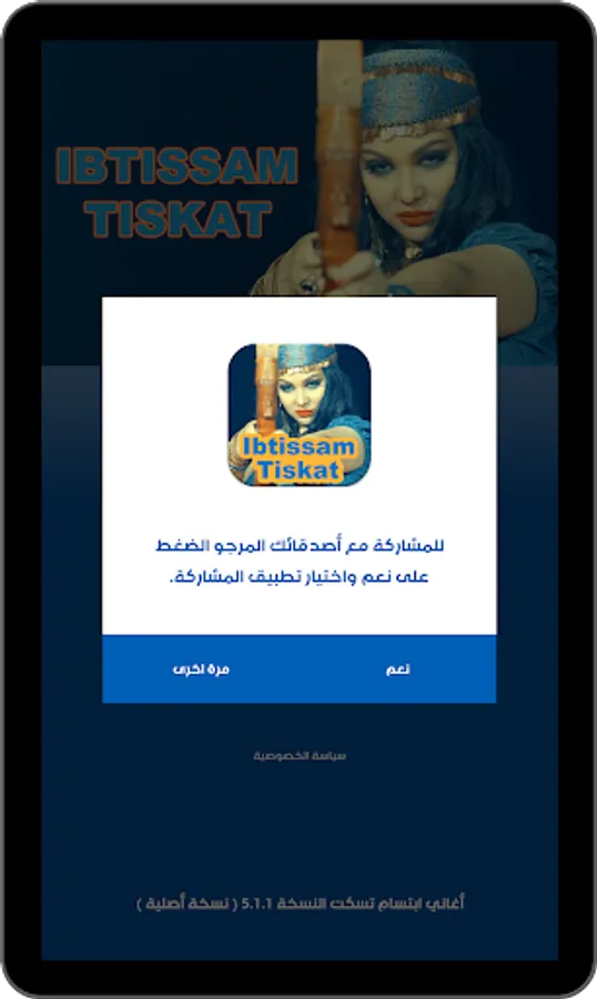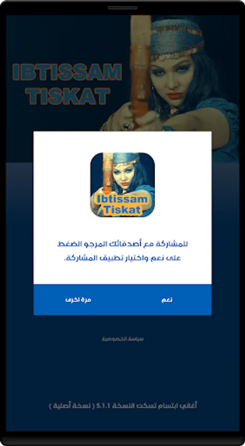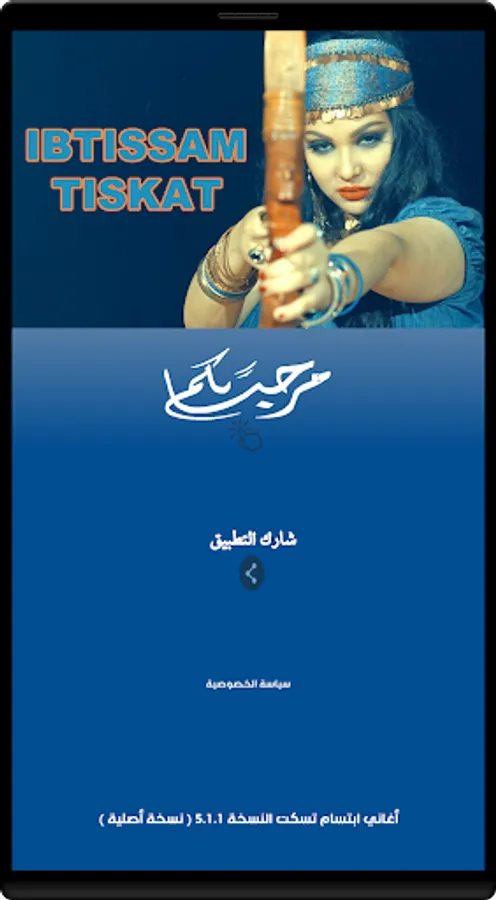 Ibtissam tiskat application is a free application on the application store and the application contains a collection of songs of the artist Ibtissam tiskat without connection to the Internet sans internet.