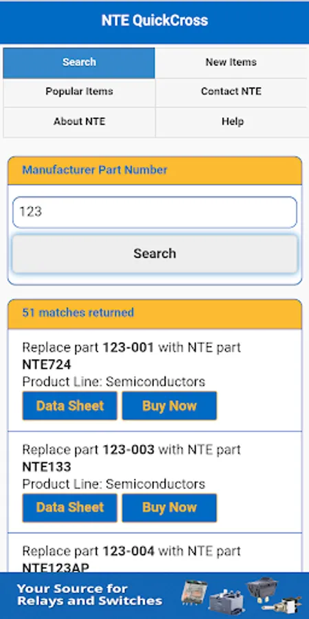 Download the FREE NTE QUICKCross app today and start using the industry’s most comprehensive electronic component cross reference.