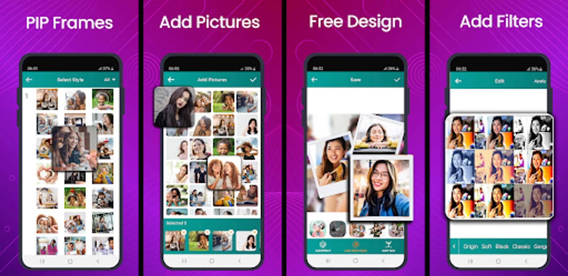 → PIP collage Maker Photo Layout lets you maxing ordinary photos into creative photo collages with a perfect design layout.