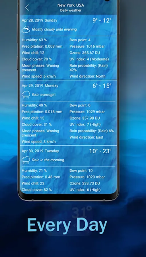 Weather and Radar Live Forecast gives you a real live weather wherever you are in the world , you can choose to detect your location automatically (recommend) or add location in a list in simple 2 click , to get your weather information each hour every day and the whole week