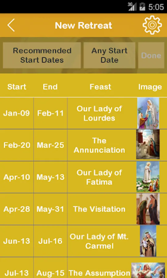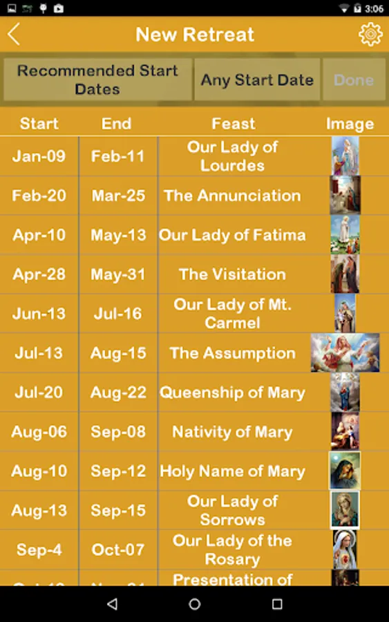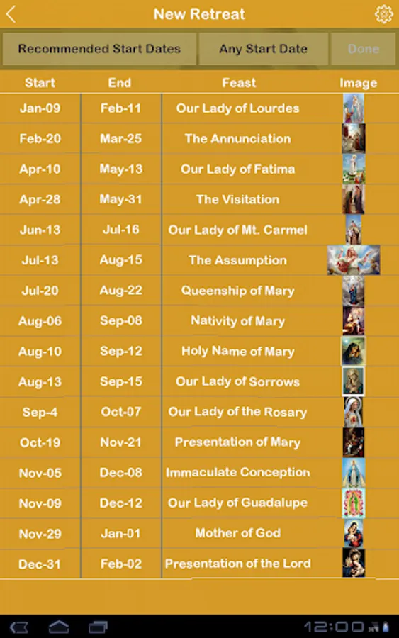 The Totally Yours app allows the user to sign up for a retreat using the 'Recommended Start Dates' (Preferred option), or the user can choose to start the retreat on any given date. Each of the four parts contain a daily reflection and specific prayers. Also included is a journal for the user to jot down anything that touched them that day.The daily learning tab allows the user to specifically identify up to 3 areas that they'd like to be reminded of throughout the day.