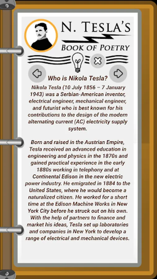 Nikola Tesla (10 July 1856 – 7 January 1943) was a Serbian-American inventor, electrical engineer, mechanical engineer, and futurist who is best known for his contributions to the design of the modern alternating current (AC) electricity supply system.
