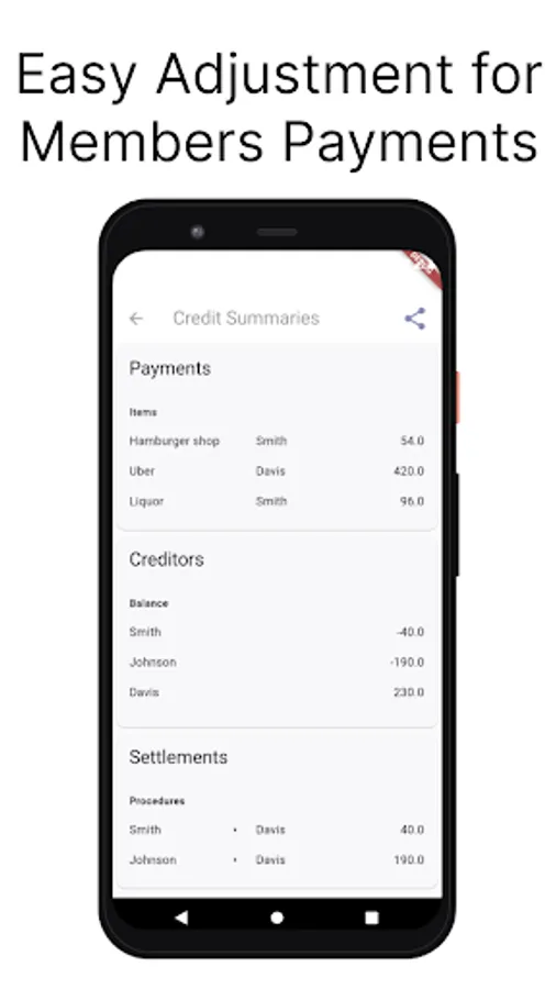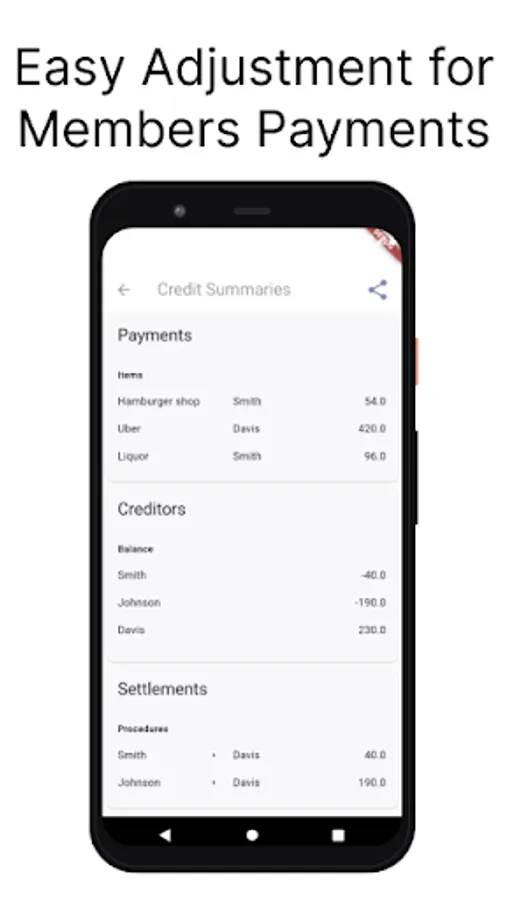Distribution calculations of either trips or meals paid by several members is difficult, when wanting split bill.