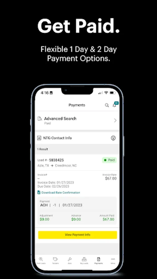 Looking to get paid on that load you recently delivered? Beon Carrier makes it easy to search and view the payment status of all your recent loads. You also have 24/7 support for any payment inquires. If you need to get paid faster, our 1 Day and 2 Day Payment options are deposited directly into your checking account.