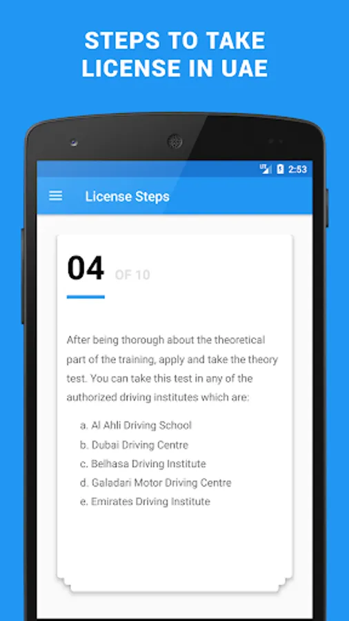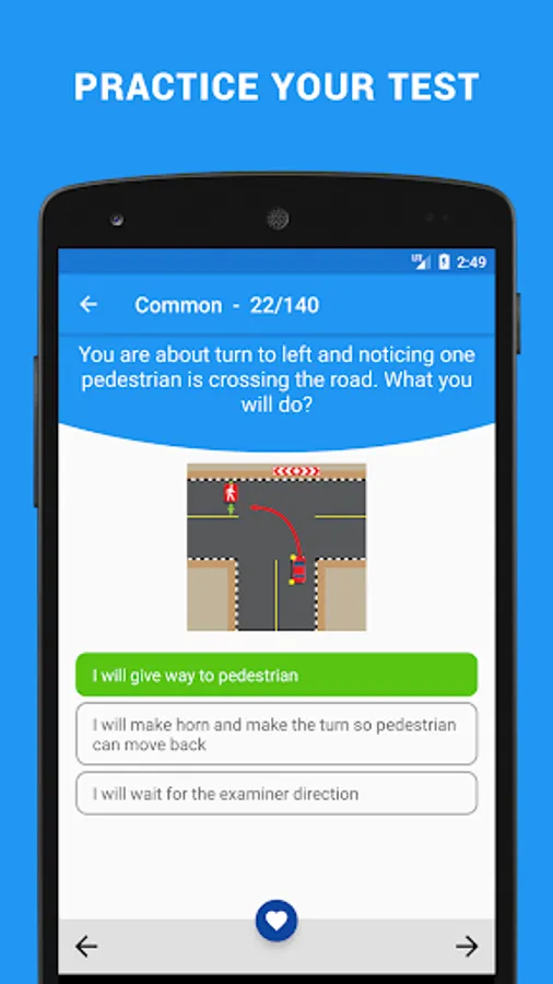 This application is free and helpful in preparing theory tests for getting a driving license in many countries like United Arab Emirates Dubai, Abu Dhabi, Sharjah, Australia, Canada, United Kingdom, United States, etc.