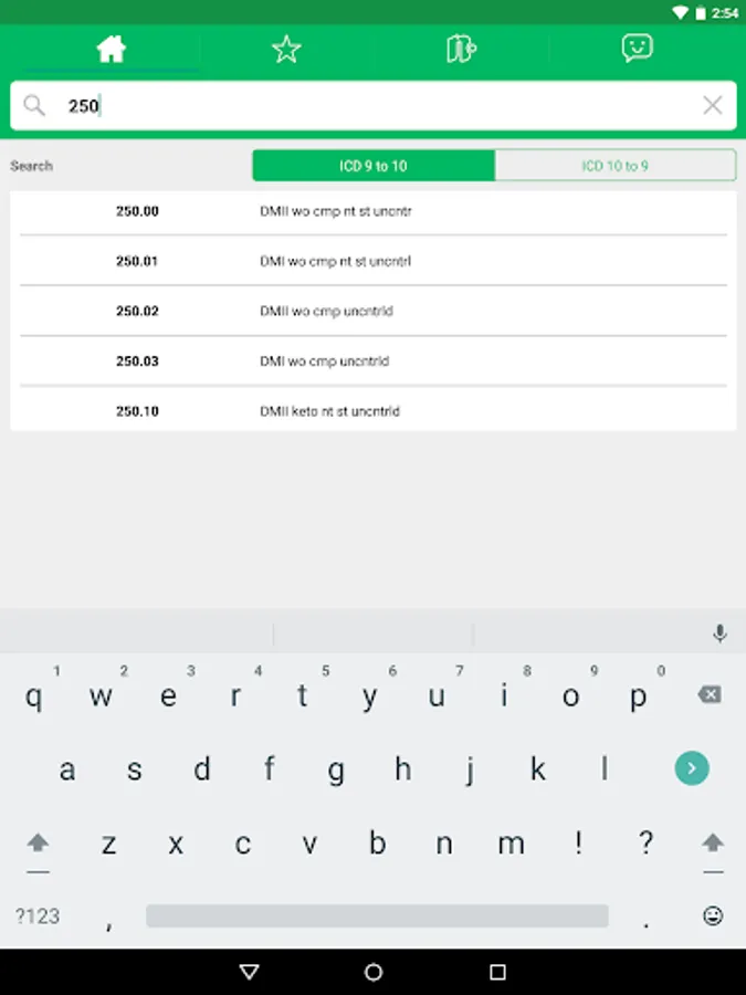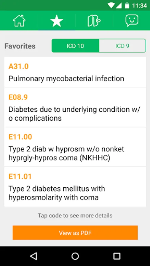 Codes can be searched numerically or by description and you can save your favorites for future use. This favorite ICD 10 codes can be printed or shared through email. Past searches are saved in your history so you can speed up your next conversion. Code descriptions can be viewed in both abbreviated and long form.