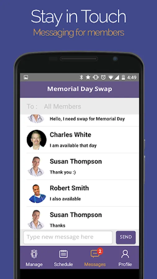 The call schedule administrator creates a call group, invites members to join the group and asks for their call preferences. Aided by the nAble OnCall and the input from the group members, the administrator creates an equitable call schedule. The group members can send messages within the group to request call swaps or seek temporary coverage arrangements. The call schedule is displayed in color-coded format on a monthly calendar, which can be shared, emailed, and printed.