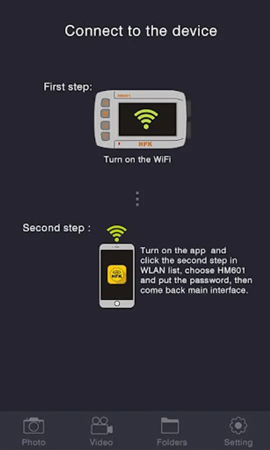 HFK is one of the best company which design and develop motorcycle accesories. HFK motorcycle dvr dash camera is a smartphone App based on WIFI smart cloud, you can use the app to connect the product to play the vedio and pictures and share them on social networks, a totally new way to connect the motorcycle dvr dash camera, you can use the app to connect the product to play the vedio and pictures and share them on social networks. The main functions are as below: 1. Loop recording 2. Video preview and playback 3. One button sharing the video and pictures on social networks. 4. Intelligence Control by app