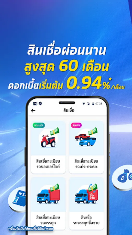 wheel money application Non-life insurance and vehicle title loan services Under the supervision of the Bank of Thailand and OIC, giving you access to financial services that are transparent. Convenience through a secure app and efficient