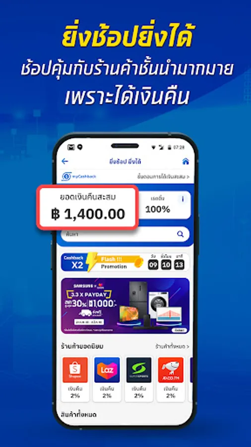 - Shop online and receive cash back into your bank account (menu “Shop and get cash back”)