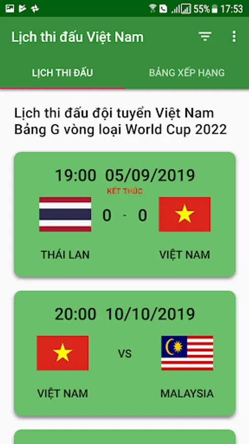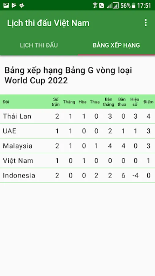 - Football Results, Soccer Scores of matches of the Vietnamese team