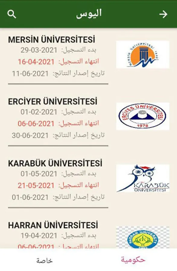 2. The application collects information about the start and end dates of registration for Turkish universities for each university