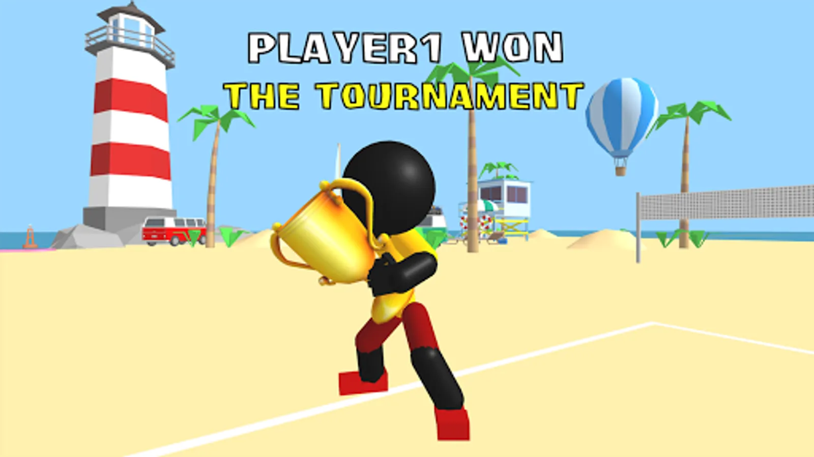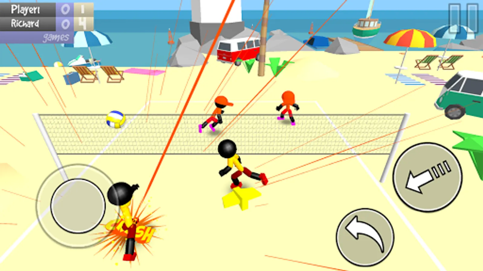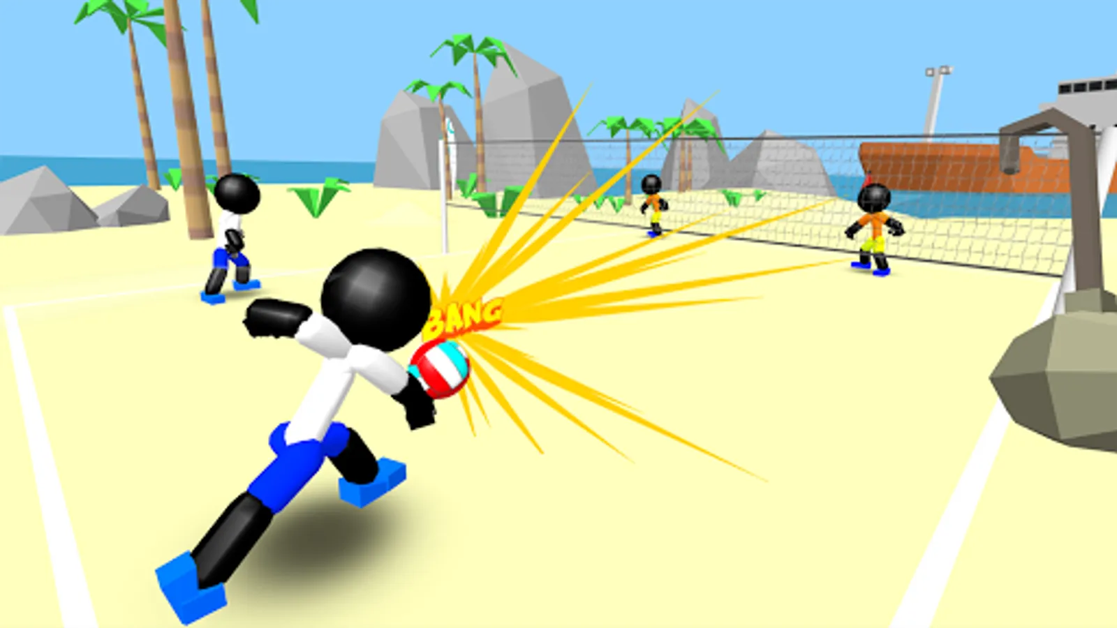 You are a stickman volleyball player! Time for some running and smashing of the ball on a beautiful 3d beach to relax.