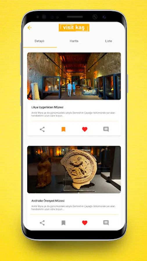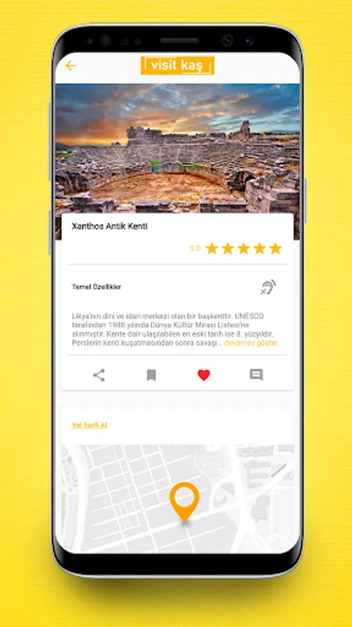 Visit Kaş is a mobile application consisting of smart maps and visual cards that you can use as a virtual guide in your travels. Thanks to the application, you can have information in many areas such as beaches, historical places, hotels, gastronomy, shopping, holiday agencies, and you can also receive notifications about events that will take place in the city. In short, Visit Kaş application is a smart city application that guides you in your travel to Kaş.