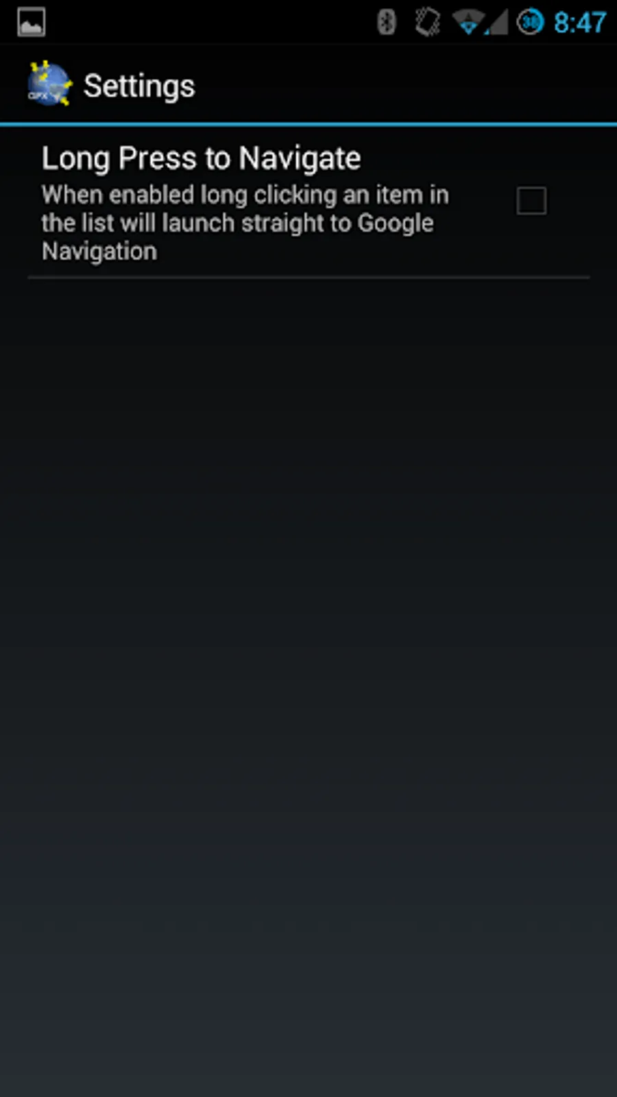 Long Press to view the details of a stored waypoint. You can also configure long press to directly launch into Google Navigation.