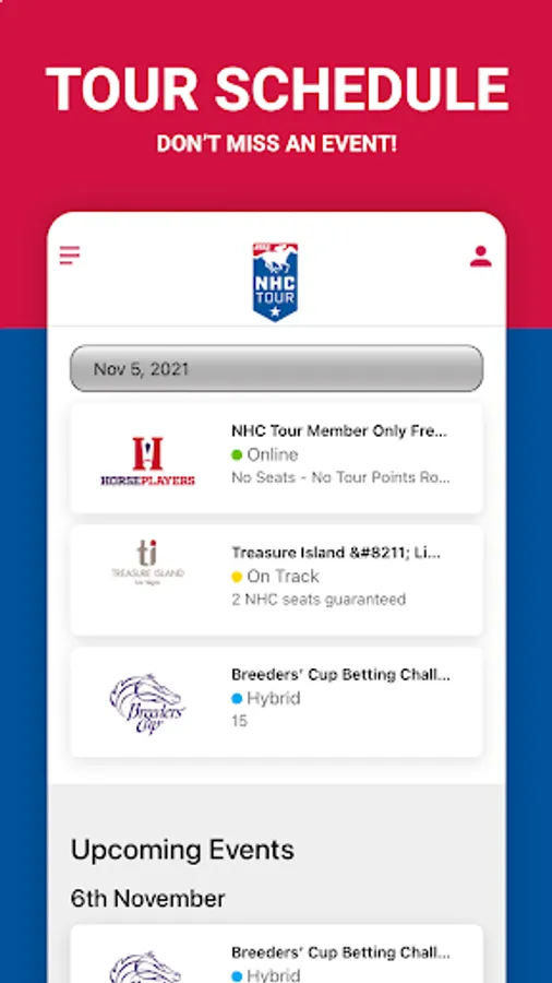 The NHC (National Horseplayers Championship) is the world’s richest and most prestigious handicapping tournament of the year for horseplayers and is the culmination of a year-long series of NTRA-sanctioned local tournaments conducted by racetracks, casino race books, off-track betting facilities, and horse racing and handicapping websites, each of which sends its top qualifiers to the national finals.