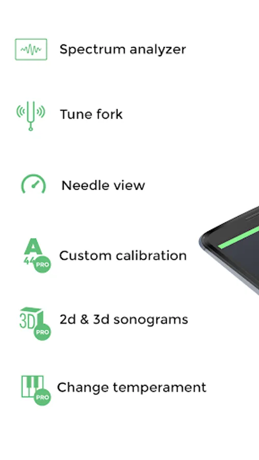 • You can calibrate the tuner for non-standard tunings: tune the reference note, tap on the display and select 'Calibrate' to set the note as the new reference. You can also select non-standard musical temperaments & alternate note naming conventions.