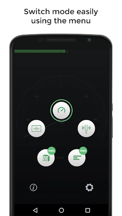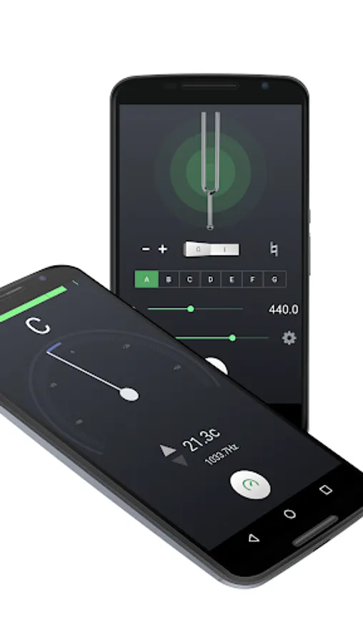 For those who prefer to manually tune their instrument, the 'Diapason' view lets you play a reference tone, 'A' (440 Hz) or any other note that you can select by moving the frequency slider.