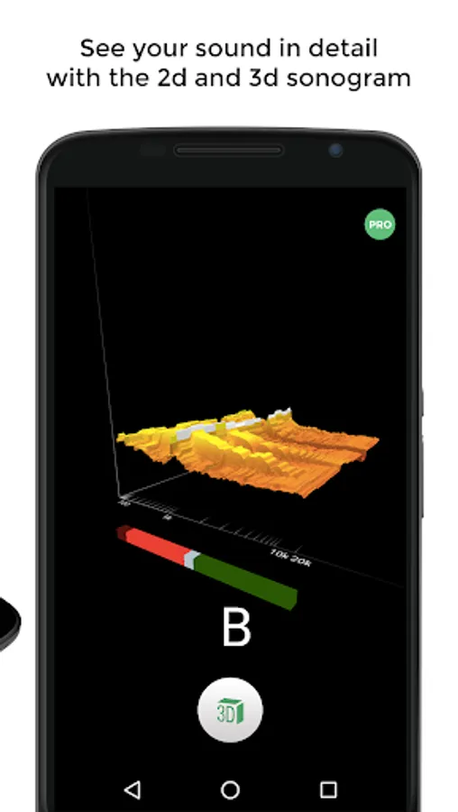 The audio spectrum analyzer provides visual feedback of the notes played by the instrument and shows a small arrow to highlight the harmonic whose pitch the tuner is tracking.
