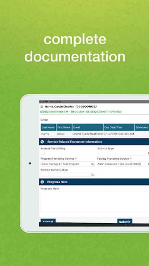 Using a tablet, session data, data collection and electronic signatures are captured, stored and automatically synchronized to the person’s electronic health record (EHR) thereby creating a complete view of the person’s care history.