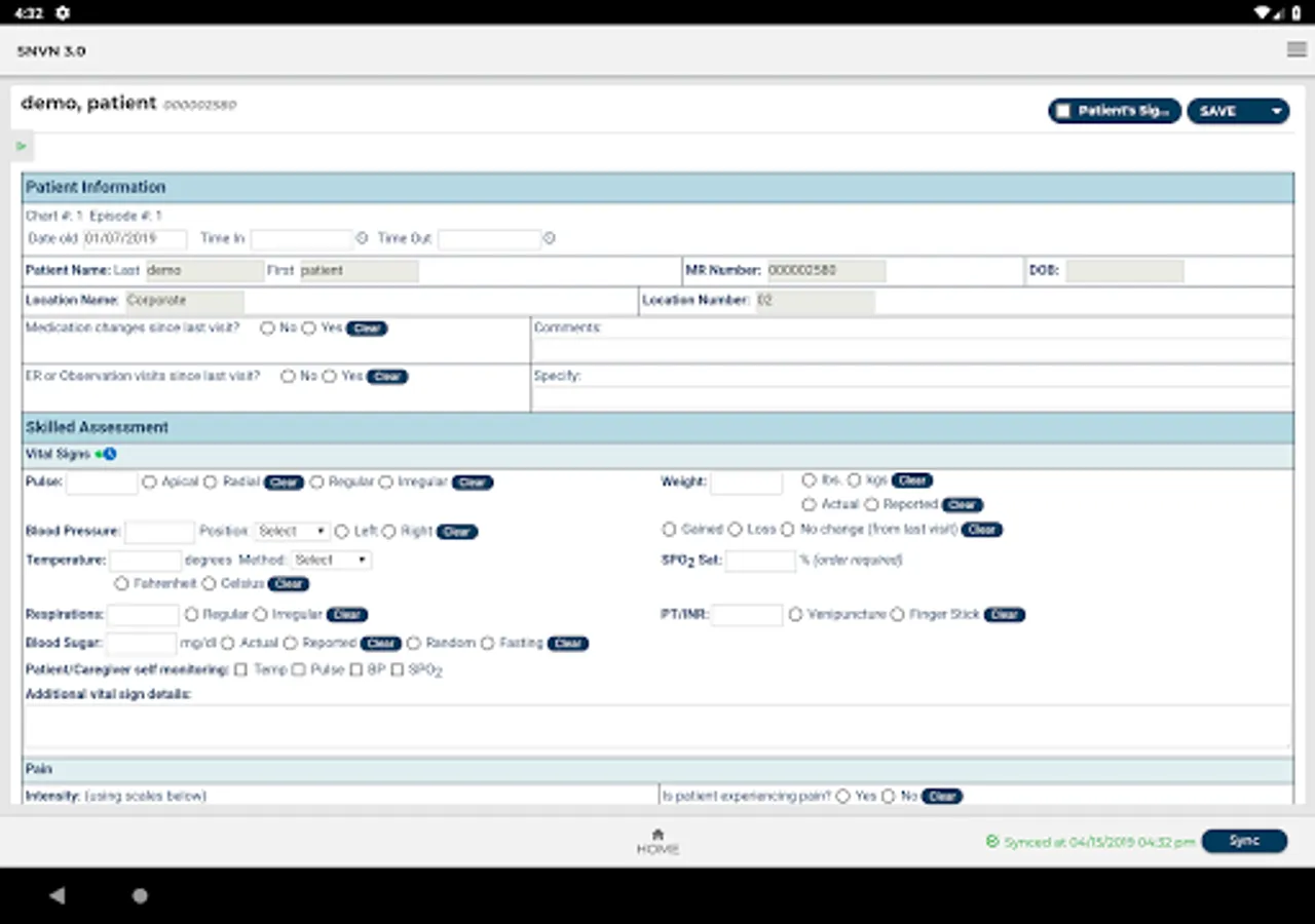 This mobile app enables clinician's day to day activities at the point of care. The user experience, app availability, and reliability of collecting data are our primary focuses. The offline accessibility makes it possible for a care professional to still document digitally, and thus automate parts of their work, as opposed to documenting on paper and digitizing it later. A clinician's experience of documentation shall improve, and their workload in offline situations shall be reduced significantly using this app.