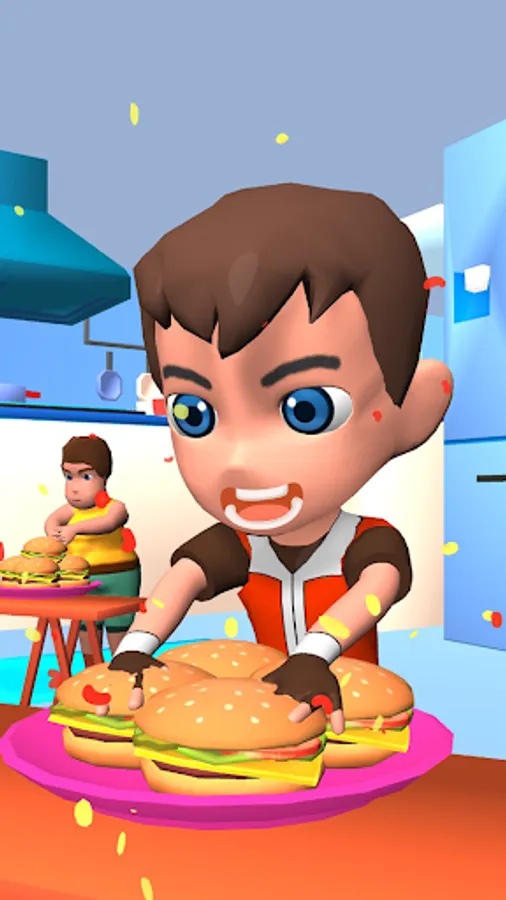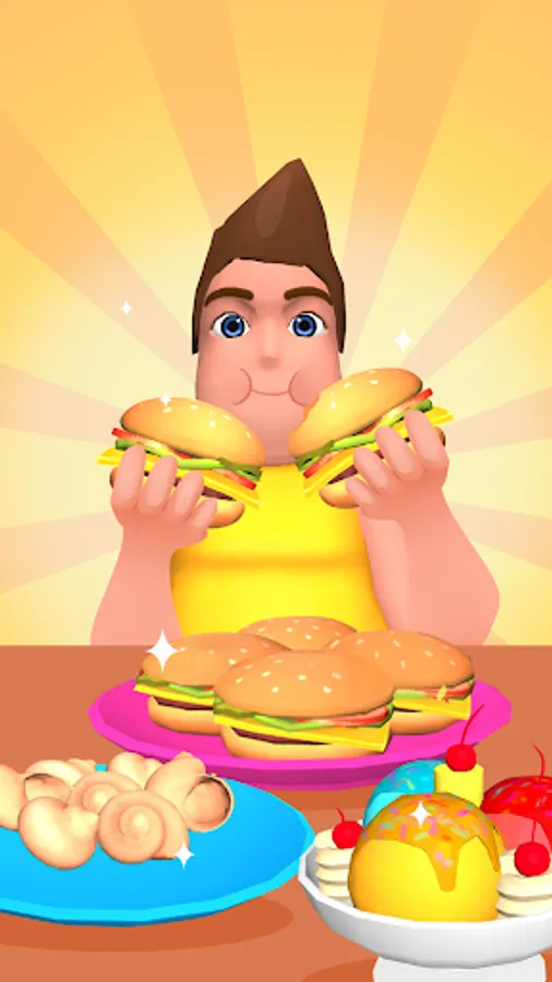 ⭐️ FUNNY CHARACTERS: Play as Hot Fitness Girl, Fat Boy, Grumpy Granny, Muscle Man, and so on. Choose your fighter and see who can eat best?