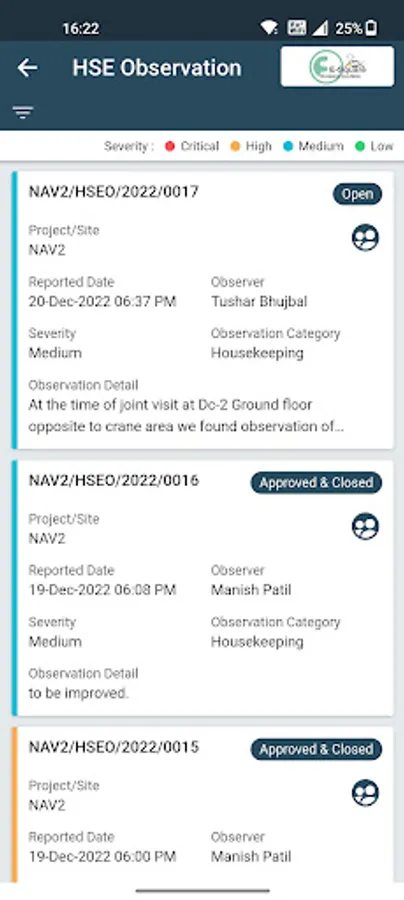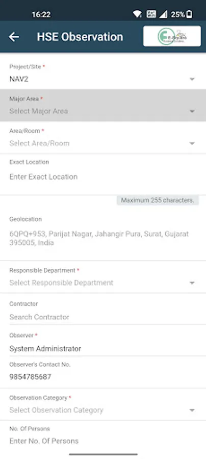 - Record and maintain the details of Safety observation, which happen in Field Area.
