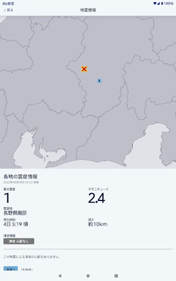 In addition, you can intuitively check the disaster occurrence status on the map display, and you can also receive accurate information using the widget even if the app is not running. Please use the Biz safety confirmation application for disaster countermeasures in companies and organizations.