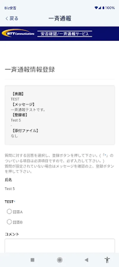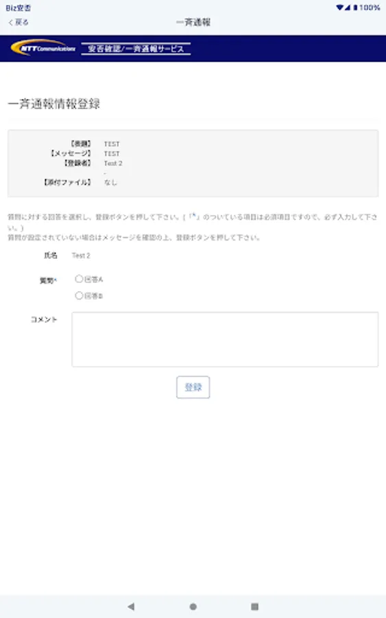 It is an Android application of disaster countermeasure solution "Biz Safety Confirmation".