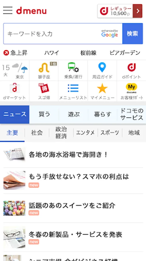Look for fun and useful content and services unique to smartphones from the d menu. In addition, we will inform you of card information that information on our daily lives will be enriched.