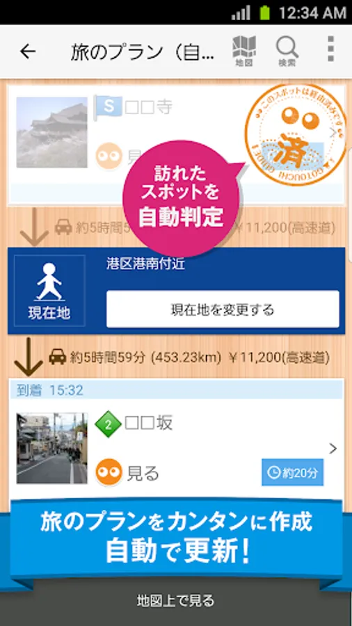 Automatically determine the spots you have visited, and automatically update your current location and the spots you have visited on your travel plan!