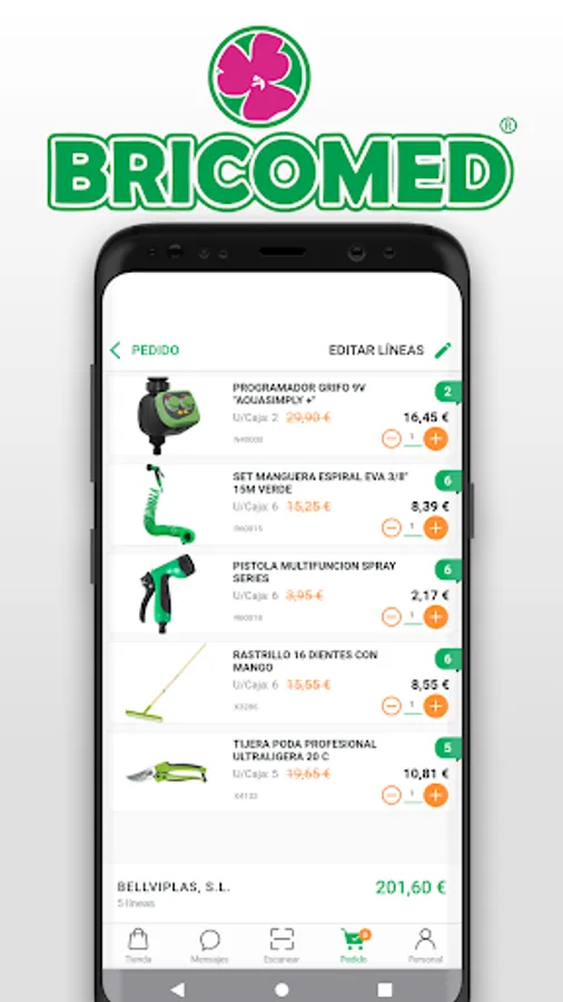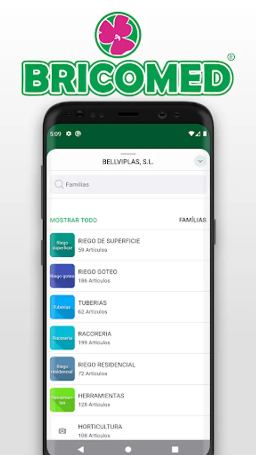 Download the new BRICOMED App for smartphones and tablets and find everything you need in agriculture, gardening and irrigation products. We have a wide catalog, dynamic and constantly growing, dedicated exclusively to professionals. BRICOMED is the perfect online APP for professionals, with unique purchasing functions: - Scan our products with the barcode and check their characteristics. - Search for the products you need, save them in favorites, add them to the basket or place the order directly. - Find out about all the news, through direct notifications on your smartphone from the App. - Experience a new tool to make your purchases from anywhere 24/7 - Check the availability and prices of the products, adding them to the cart per unit or box. - You will be able to find all the products segmented by specialized sectors that are divided in an intuitive and simple way, so that it is very easy to find them according to your needs.